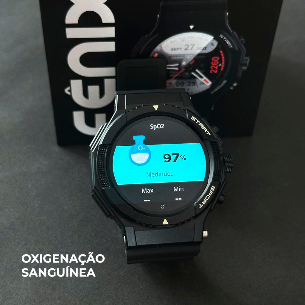 GPS integrado, 1ATM de resistência à água, chamadas no pulso e +100 modos de esporte para ir além dos seus limites.